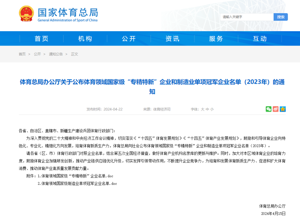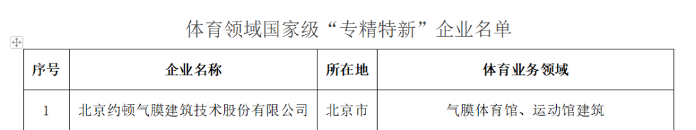 22日,国家体育总局向社会公布体育领域国家级“专精特新”企业和制造业单项冠军企业名单(2023年),约顿公司位列榜单首位。连续两年上榜,既是各方对约顿气膜的专业化、精细化、特色化、新颖化的持续肯定,也是对约顿公司在膜结构创新研发领域和专业技术应用解决方案领域所得成就的极大认证与支持。