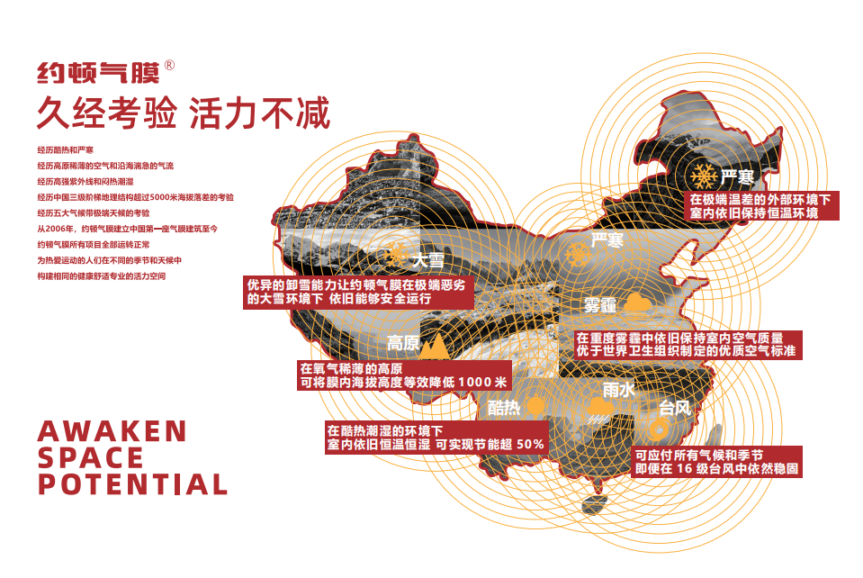 作为气膜场馆设施的践行者,我们看到体育产业的发展将释放出新的市场需求空间,未来,约顿气膜将继续深耕膜结构创新研发领域,秉持“匠心精神”,推动行业发展,建设美丽中国。