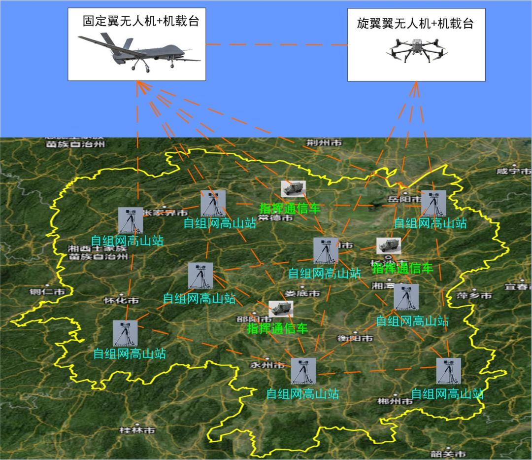 微波宽带组网设备采用相控阵天线和宽带自组网技术,用于专网骨干网络构建,具有远距离传输,大带宽、高速动中通、快速入网、低时延等特点,研制的各型端机可满足高山固定站、旋翼无人机载、固定翼无人机载和车载等平台使用,提供高速动中通、远距离和高容量的图传、数传双向通信链路,为应急指挥通信快速构建大带宽、广域覆盖、和连续稳定的数据传输通道。