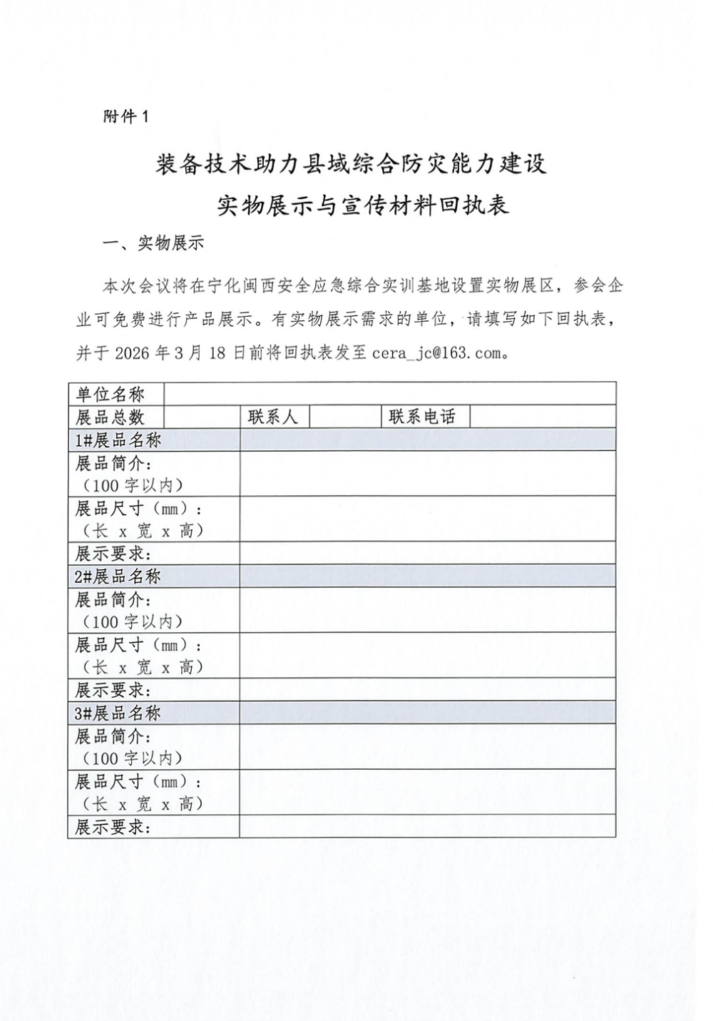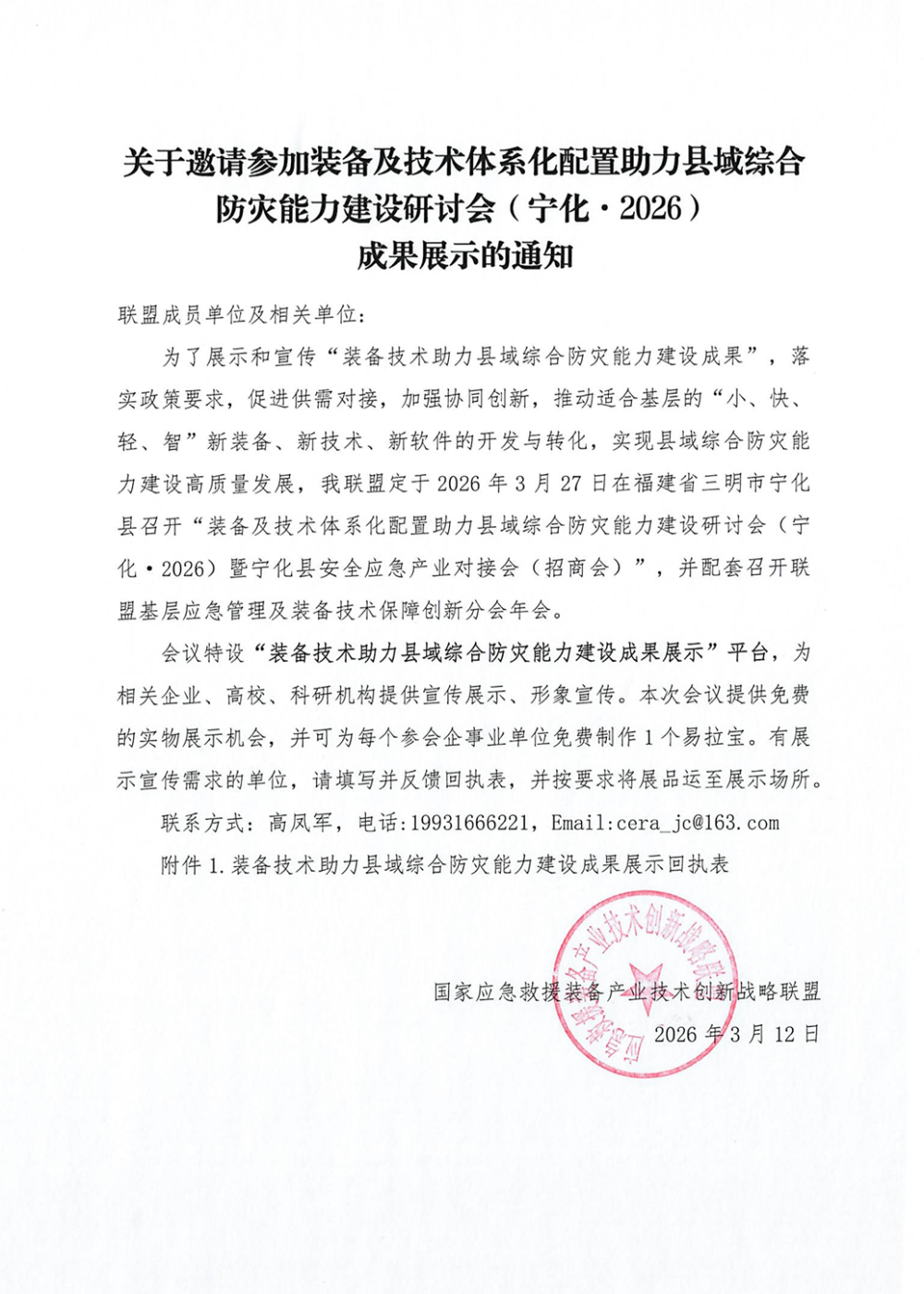关于邀请参加装备及技术体系化配置助力县域综合防灾能力建设研讨会(宁化·2026) 成果展示的通知