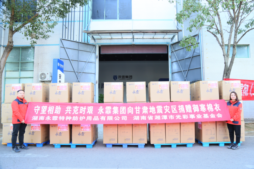 12月18日,甘肃临夏州积石山县发生6.2级地震,牵动着全国人民的心。灾情紧急,永霏员工加班加点赶制出了1085件防寒羽绒服,于12月25日通过湖南省湘潭市光彩事业基金会捐赠受灾地区,用于帮助灾区人民抵御严寒抗击灾情。