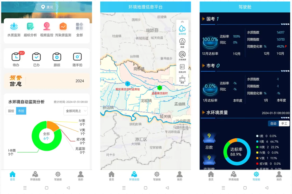 平台建成后,形成了1套数据资源共享中心,N个决策应用场景,2种服务终端(PC+移动端)的1+N+2水环境管理模式;涵盖了水环境监测、监控预警、应急管理、环境评估、信息共享、科学决策等重要功能。本项目自建成以来,在郾城区水环境监管工作中发挥了重要作用,实现了流域水环境监管可视化、业务管理一体化、环境决策科学化,全面提升了水环境智慧化监管水平。